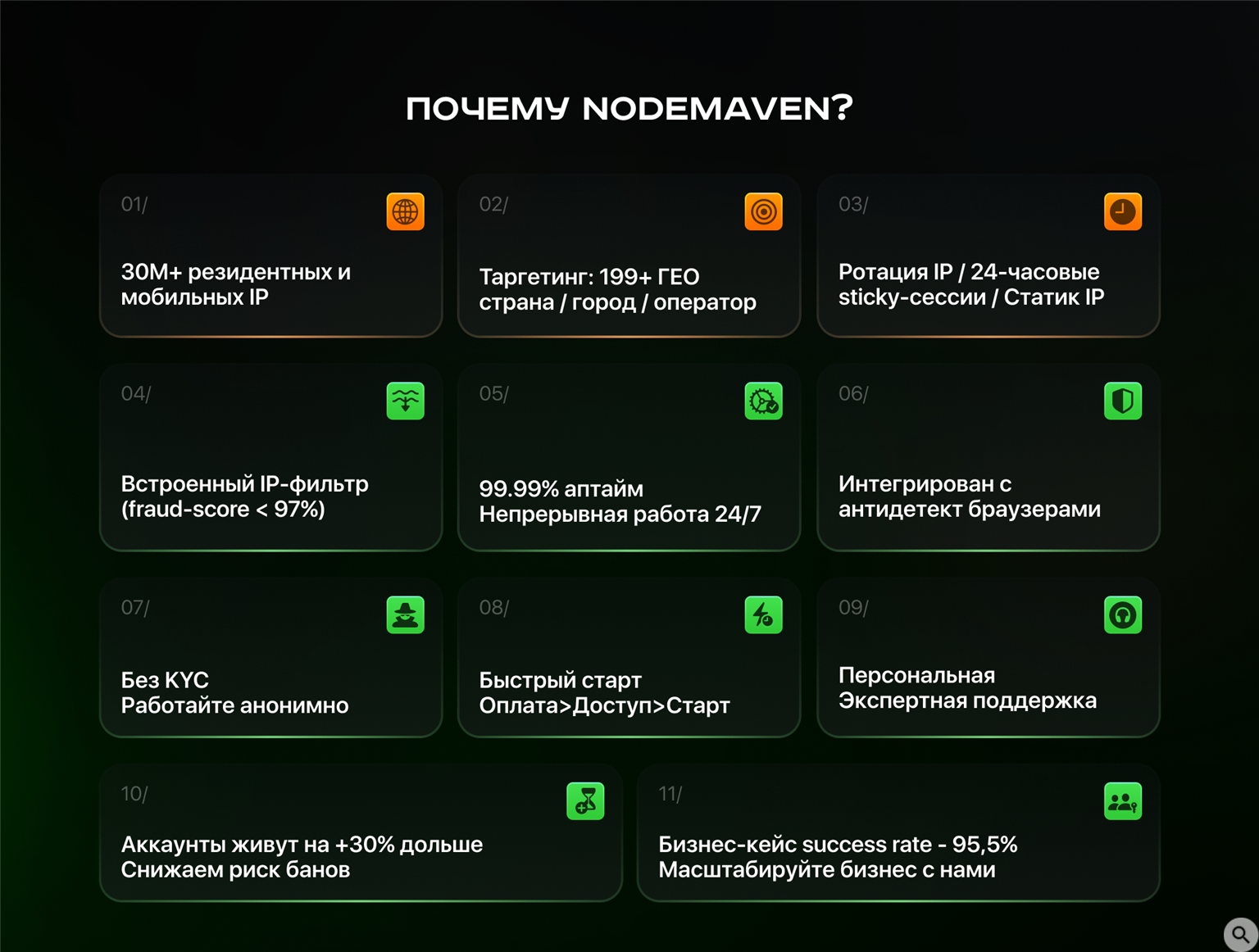 Уникальная ИИ фильтрация IP, без KYC, uptime до 99.99%,