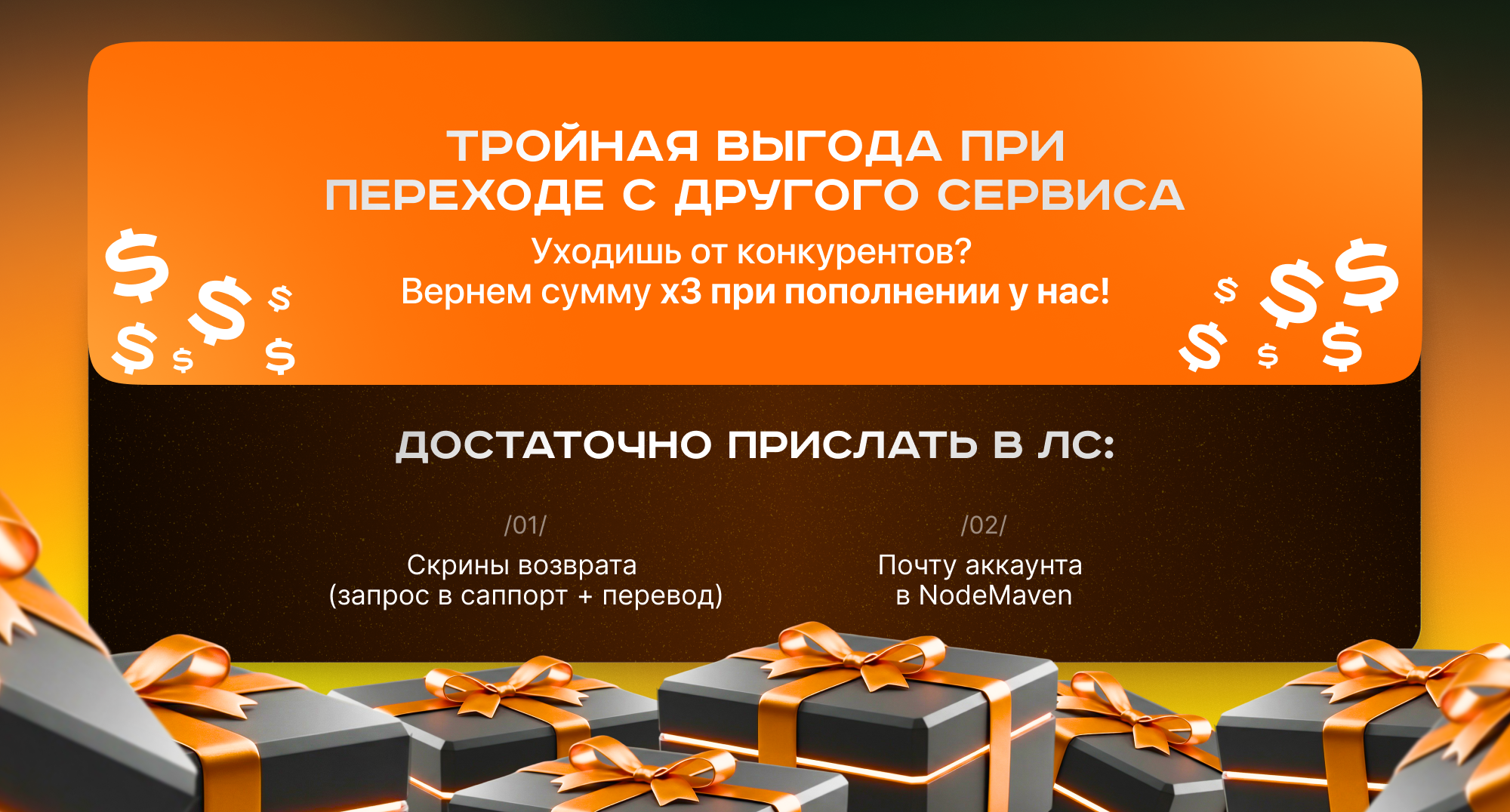 Переходишь от другого провайдера? Начислим х3 к депозиту. Узнай условия в поддержке.