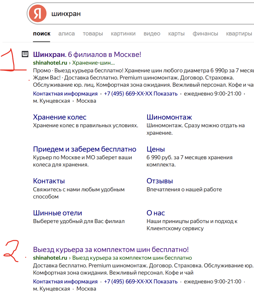 Вот так это выглядит. Посадочная по обеим позициям - одна и та же. Это именно Директ (не основная выдача). Просто кто хорошо в теме Директа - так можно? А если можно - то как? Спасибо