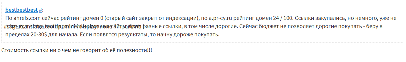 Стоимость ссылки ни о чем не говорит об её полезности!!!