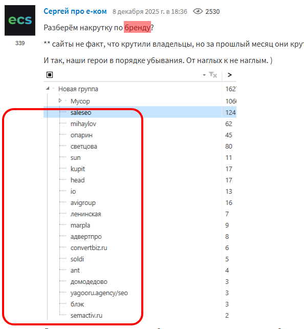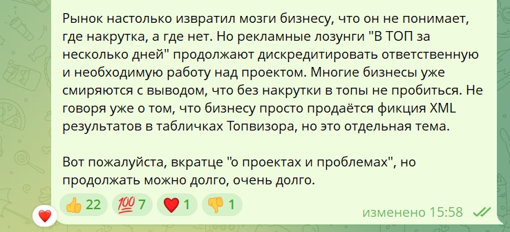 А Сливинский вводит в заблуждение, что всё дело в УТП и в возросшей конкуренции , умалчивая и искажая, что определяющим образом даёт эффект в ранжировании.