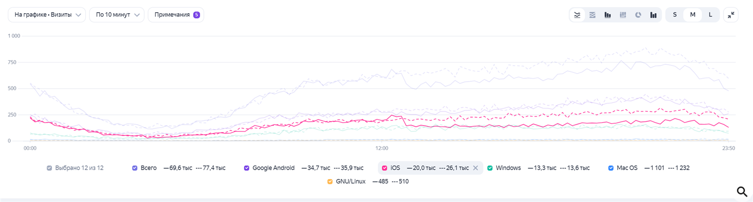 Из -8к визитов -6к пришлось на IOS. Это я совсем не понимаю как объяснить.