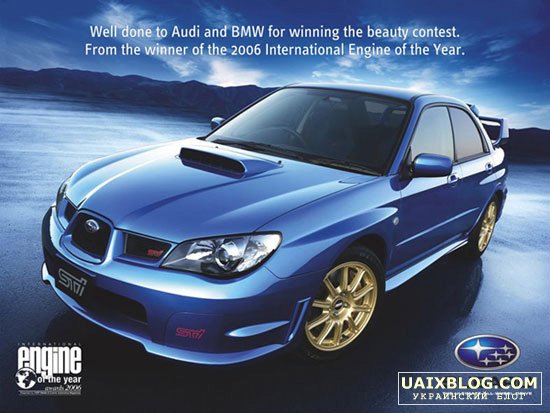 Третий в этой истории оказался не лишним. Subaru заявило, что BMW и Audi — молодцы, и конкурсы выигрывают, и спорят красиво, а вот «Субару», тем временем, стала лучшей в International Engine 2006 (Лучший двигатель).