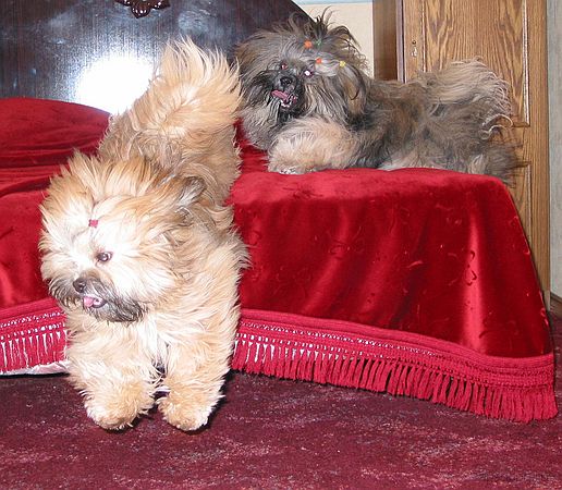 Собак породы лхаса апсо часто называют тибетскими болонками, мне попадалось название тибетская такса. В этом есть доля истины, апсо похожи на болонок, и скорее всего были предками современных болонок. А насчет такс, несколько растянутого формата, невысокого роста апсики иногда напоминают смешных такс.