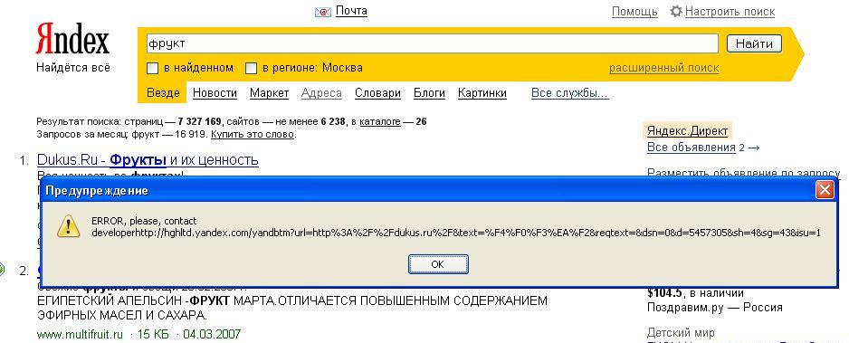 fuster, MiRaj, эту ошибку, как я понимаю, выдаёт колдунщик Коли Дубра. Связано это с тем, что Яндекс перестал показывать переколдовку.