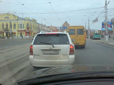 Toyota Corolla Fielder стоит на полкорпуса левее и моей машины и впереди стоящей газели. Слева от меня трамвай хочет проехать на свой законный зеленый свет (наш левый ряд поворачивает по стрелке, которая загорается после зеленого).