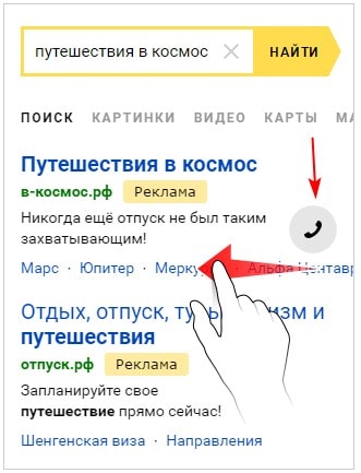 Вот смотрите, в мобильной поисковой выдаче у объявлений есть возможность набрать номер телефона не переходя на сайт.