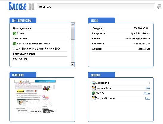 4. Данные PR, ТИЦ, DMOZ, Яндекс Каталог.