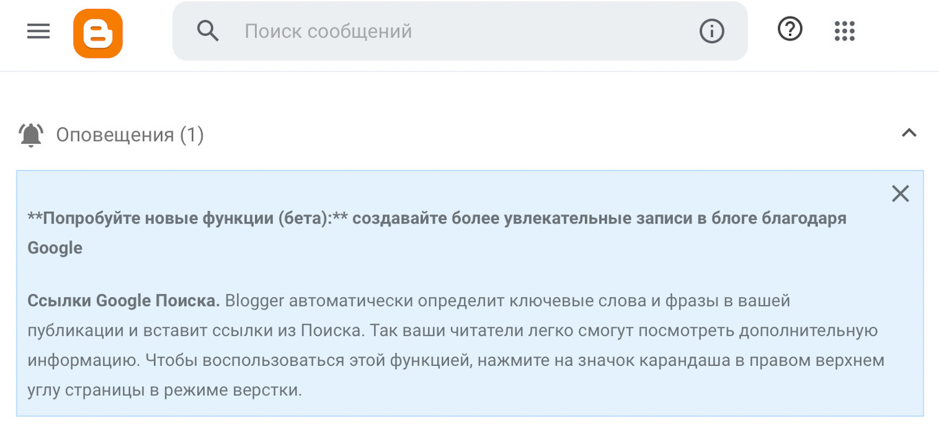Теперь, вы можете быть в курсе новостей Черновиков Blogger, они добавлены в Панель управления.