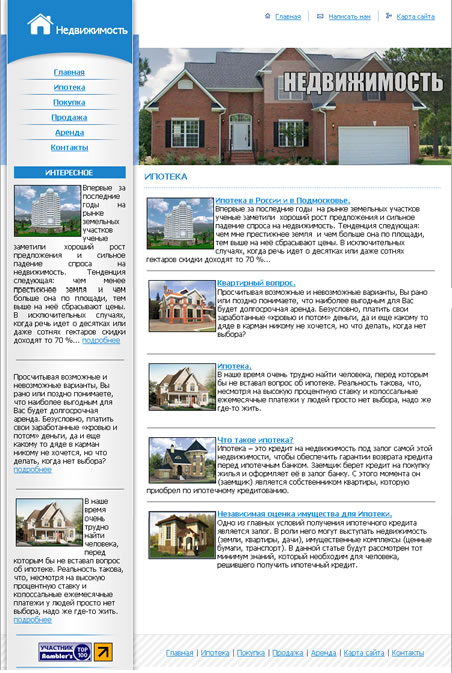 Тематика: Недвижимость | Сайт содержит полезный статьи про ипотеку, статьи о том, как правильно покупать и продавать недвижимость, в частности квартиры, так же есть статьи об аренде жилплощади.