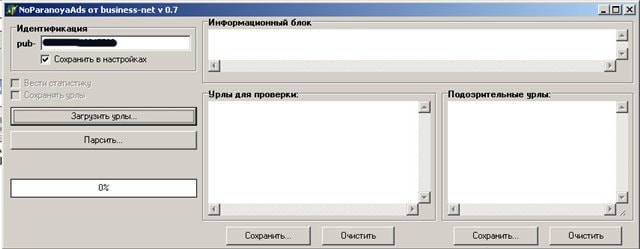 Прога работает, ставить чужую рекламу для проверки смысла нет, она как бы для проверки pub id, согласитесь, вероятность взлома или можт партнер захотел немного покрутить свою рекламку, все таки есть.. так же как и вероятность взлома и внедрения Сапе кода и продажи ссылок,ифреймы,вирусняк, вообщем много чего .. суть поста такова, чтобы написать тулзу, которая бы все возможные, точнее известные на данный момент такие гадости выявляла...., ведь часто в последнее время топеги создают что там такой то код с ифреймом обнаружил там вообще ссылки продаются с его сайта а он об этом и не знает.. вообщем хз может оно и не нада.. :) тогда топег можно закрывать.