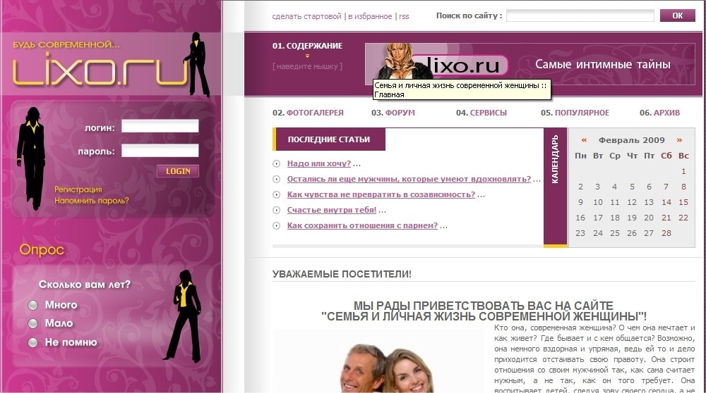 Необходимо сделать частичный редизайн сайта lixo.ru, а именно - переделать левую часть (которая с развратной женщиной).