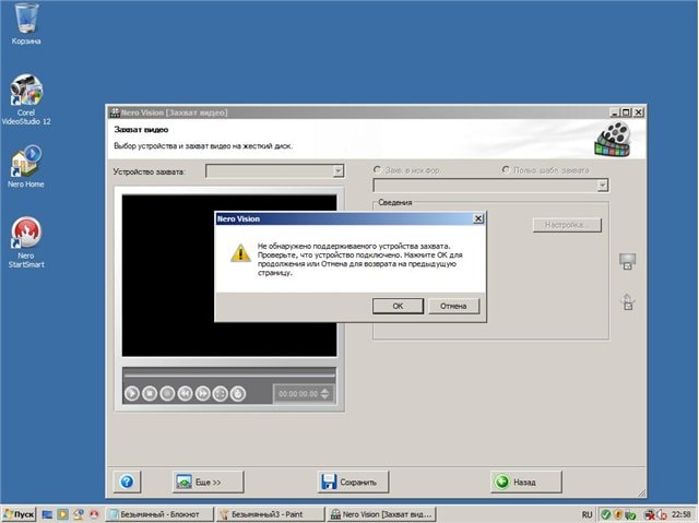 пытаюсь с помощью Nero Vision8 выдает такую ошибку