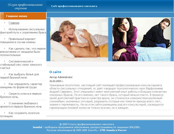 Продам сателлит на тему психологии сексуальных отношений. Контент уникален, проверен дсфайндере, происхождение контента-глубокий рерайт,могу предоставить исходники. Тест читабелен. старался делать материал по качественней. Количество текста 14.000 знаков, без пробелов, разбит на 9 тематических статей, причём к каждой статье имеется подходящая картинка. Сателлит сделан на движке Joomla 1.0.15. Шаблон уникализирован. Сателлит продаётся в порядке аукциона. начальная цена-11 wmz, конец аукциона после 12 часов п/п/с