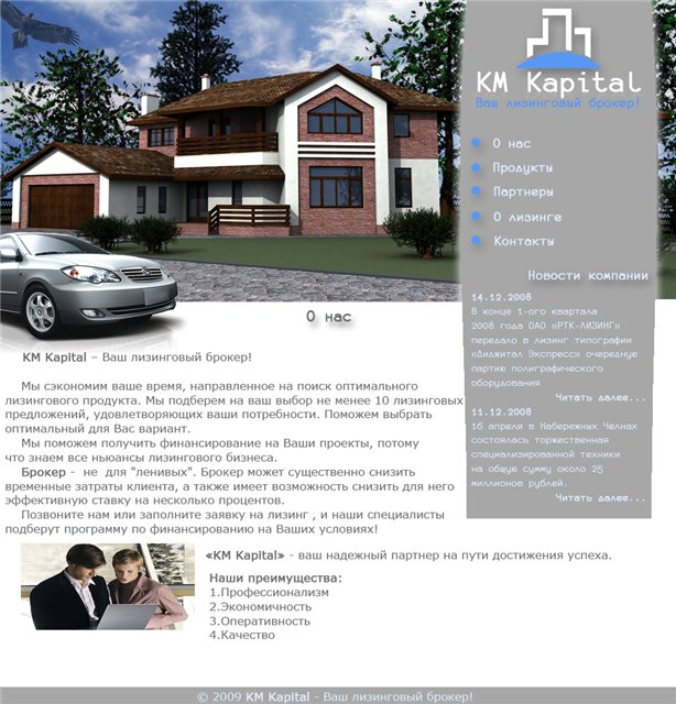 1. "О нас" как-то одиноко болтается на белом фоне. Не знаю, как-то выделили бы там что ли или еще что-то придумали. А то первое что видишь - дом, потом сразу взгляд вниз - О нас. Думаешь - о ком о нас? И только потом взгляд падает на меню - и тут аааа.