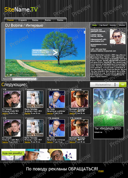 Ориентировочно для проекта видеопортал \ видеоблог клубной тематики. Возможна подгонка под различные цветовые стилистики.