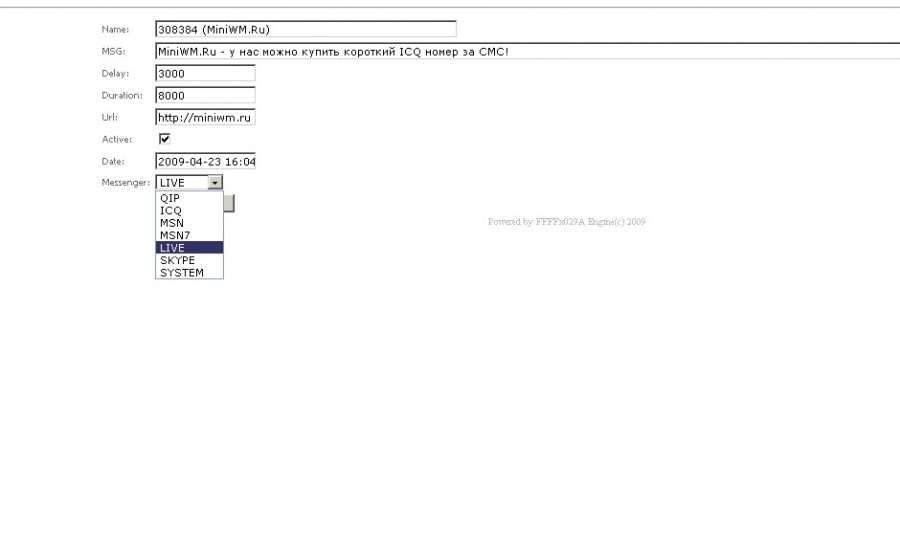 1. Доступные окошка: QIP,ICQ,MSN,MSN7,LIVE,SKYPE,SYSTEM