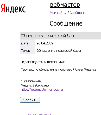 Мне сообщение от Яндекса пришло..