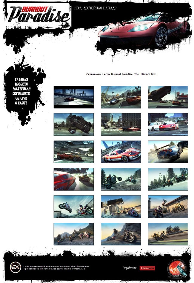 Сайт об игре Burnout Paradise: The Ultimate Box