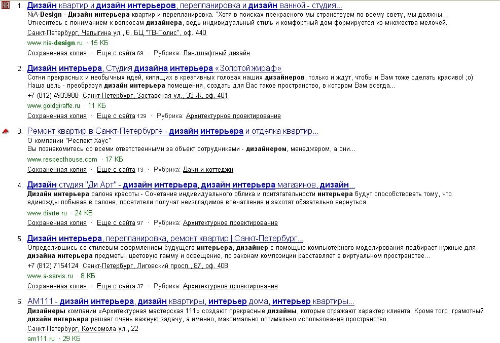 вот пример выдачи по региону Петербург, запрос "дизайн интерьера" с галочкой Петербург
