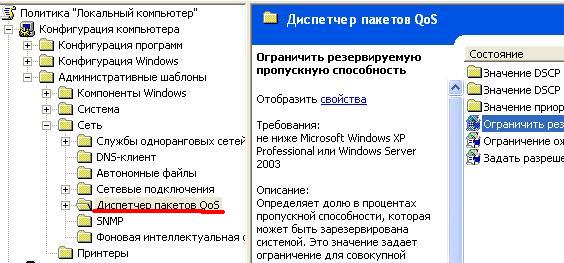 ТС, у себя в XP не нашел "Диспетчер пакетов QoS"...