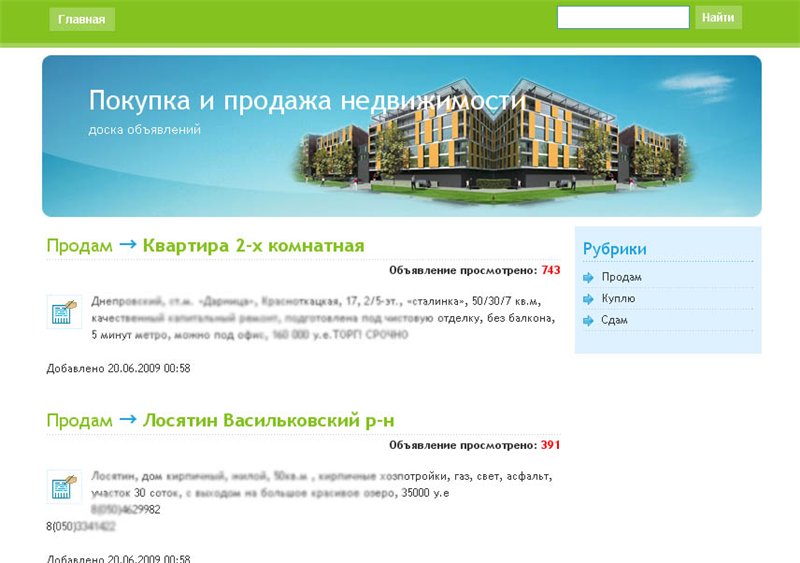 Продажа сайта (Недвижимость Киева) - еще актуальна.