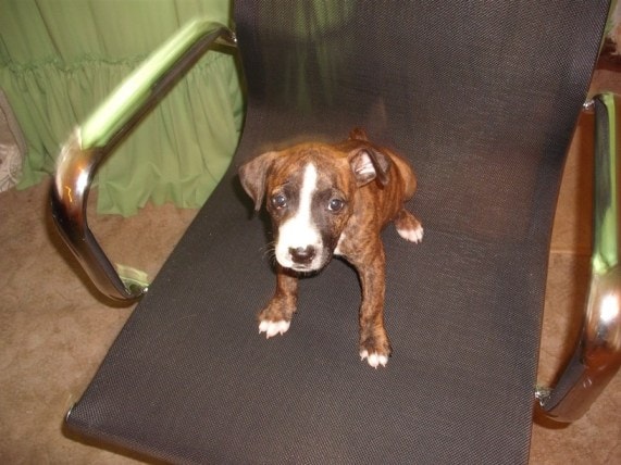 Это щенок от стафорда :))) Правда отец щенка просто крестьянин. Скоро будут маленькие стафордята - тогда выложу