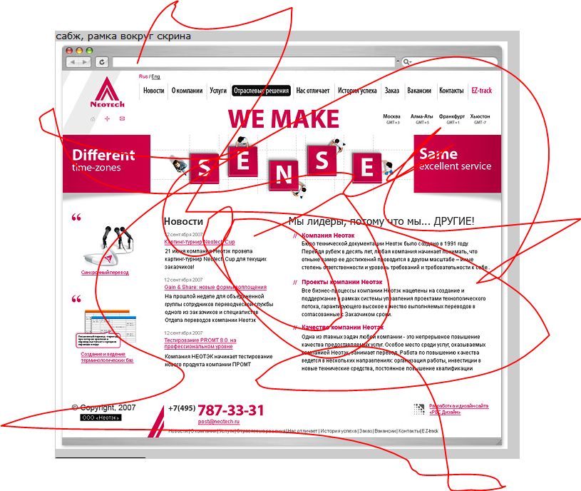 Посмотрел пристально — смущает отсутствие заголовка окна и url (его, впрочем, просто удалить). Думаю кто-то сделал стандартную рамку для сайтов, если это из портфолио. У меня была такая точно идея. Либо софт позволяет такую рамку добавлять.