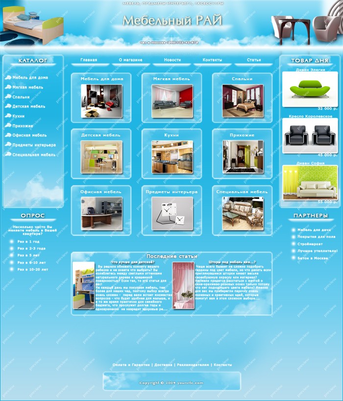 Продается PSD-макет сайта для магазина или каталога мебели.