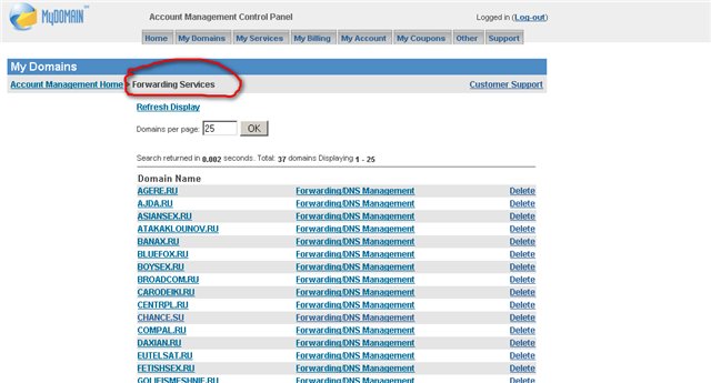 Подключил свои домены на бесплатный сервис - web forwarding