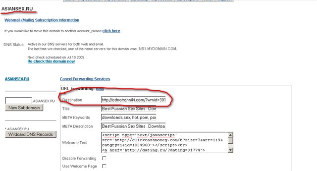 Теперь соответственно набирая asiansex .ru клиент попадал по моей ссылке на сайт однотрахники.com .