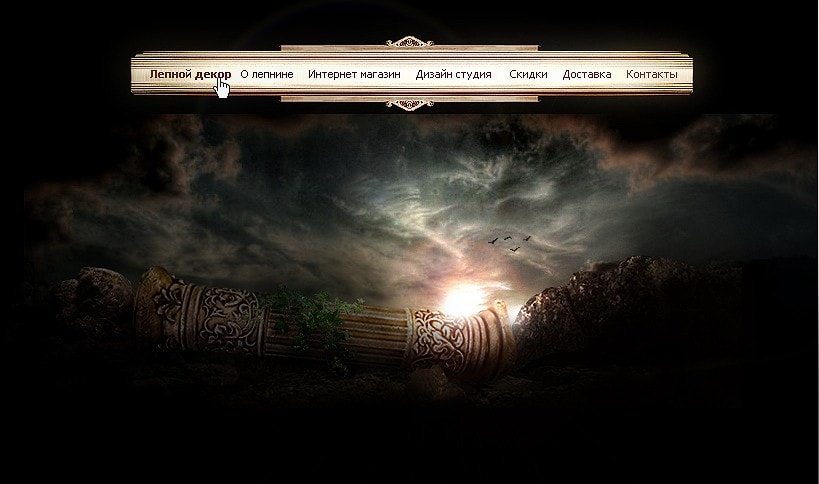 колонны вызывают ассоциации с античностью. античность "эпоха светлых тонов", поэтому черные фоны и закаты не подходят