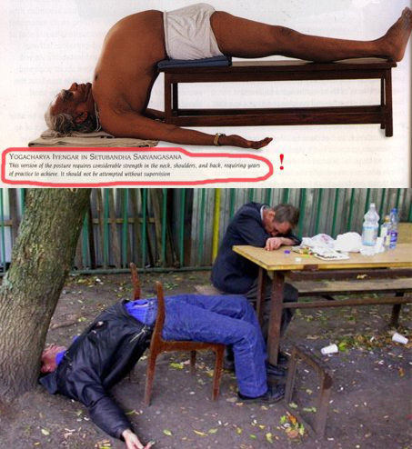 Описывались, правда, случаи, когда йога уводила в запой - но я бы такой информации особо не доверял. Скользкая она. И какая-то ползучая, скажем прямо. Йога - и запой. Где связь?