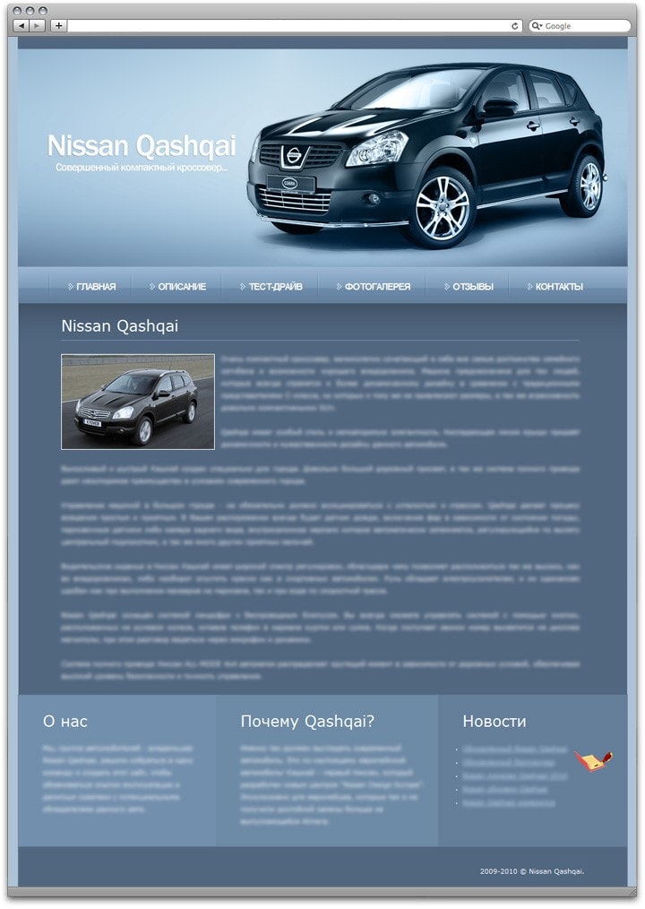 Сайт про автомобиль Nissan Qashqai