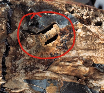 Впрочем, сначала, когда речь заходила о попадании такого изделия в породу 300-миллионнолетней давности, сомнения были у всех. Но быстро улетучились после микроскопных и рентгеновских исследований. Тем более что, помимо "болтика", и рядом с ним сами же скептики обнаружили еще несколько техногенных образований,