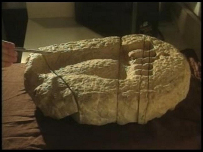 Отпечаток, похожий на след ноги в обуви, обнаруженный Уильямом Майстером в кембрийском глинистом сланце неподалеку от Антилоп-Спринг, штат Юта. Он точно вписывается в контуры следа от современной обуви. Если этот след – подлинный, то ему не менее 505 миллионов лет. Кстати, передней частью сандалии, раздавлен трилобит - моллюск, 280 млн. лет назад вымерший.