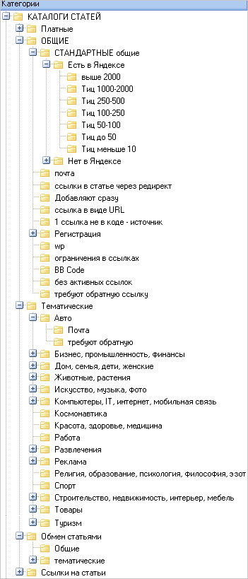 Общие каталоги статей, платные, тематические каталоги статей. Более 20 тематик.