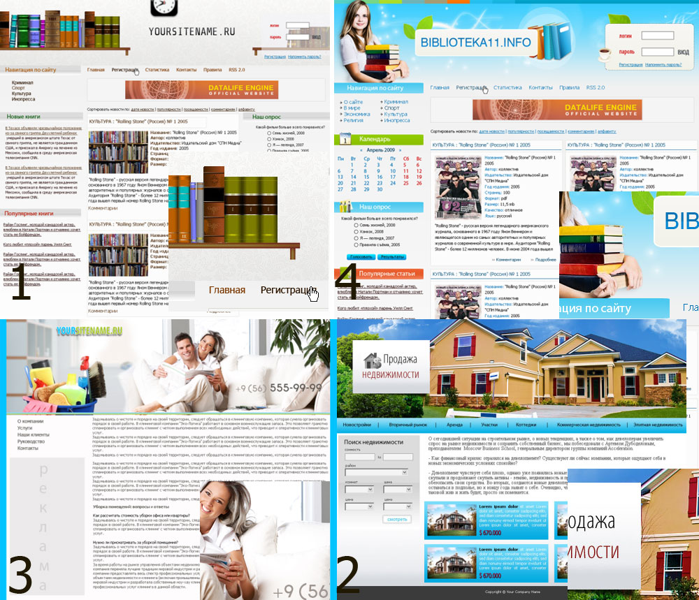 Продаются 4 макета .psd, тематика следующая: