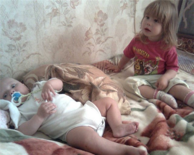 За полгода дочка родственников (слева) стала в три раза больше а нашу вообще есть не заставишь. А на второй - не успели пообедать, только отвернулись, уже спим. :)