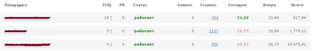 • Прибыль в сапе около 130-140 рублей в сутки. (работа над оптимизацией цен не велась месяц). Реально приносящие прибыль сайты – около 6-7 штук. Из бана выводить можно, 2 сайта были выведены лично мной.