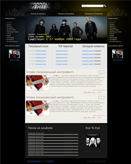 Продам макет главной страницы в формате *.psd на музыкальную тематику.