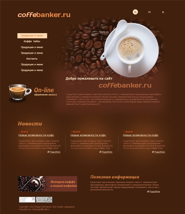 Пользуясь моментов скажу что делаю макеты и прочую веб графику на заказ от 20$( за макет) а прочие елементы от 10$ портфолио Контакты в ЛС или hatinger@mail.ru