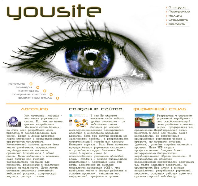 Опять же задается вопрос зачем Веб-студии дизайн студии, дизайн сайта от кого то? Когда они сами нарисовать могут! Да и еще какой студии будет приятно когда их сайт находиться в чьем то портфеле?