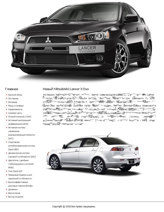 Доброго времени! Есть на продажу сайт о недавней новинке - Mitsubishi Lancer X Evo