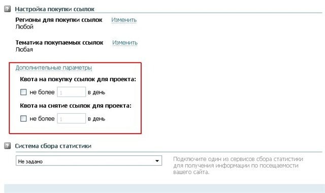 Изменения затронули и область настройки квот на установку ссылок. Добавился такой параметр как число покупаемых ссылок с одного сайта. Для проекта и для страницы его можно указать отдельно.