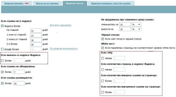 Теперь для управления снятием ссылок стали доступны следующие параметры: