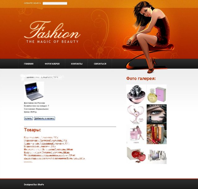 Модули: Контакты, Карта сайта, Фотогалерея, Форма заказа, Магазин
