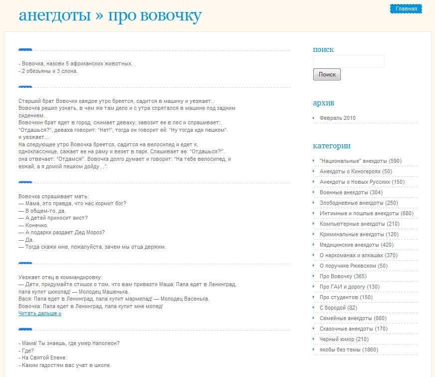 Самое приятное в этой теме то, что контент не имеет владельца, т.к. анегдоты являются народным творчеством.