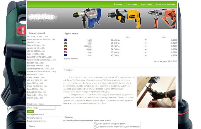 Карта сайта, поиск, форма обратной связи, гостевая, последние товары, курсы валют: установлены.
