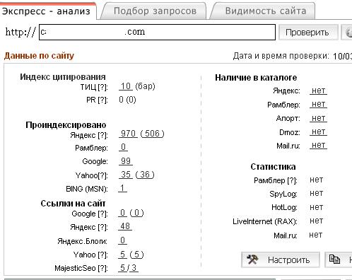 На сегодняшний день показатели сайта выглядят вот так